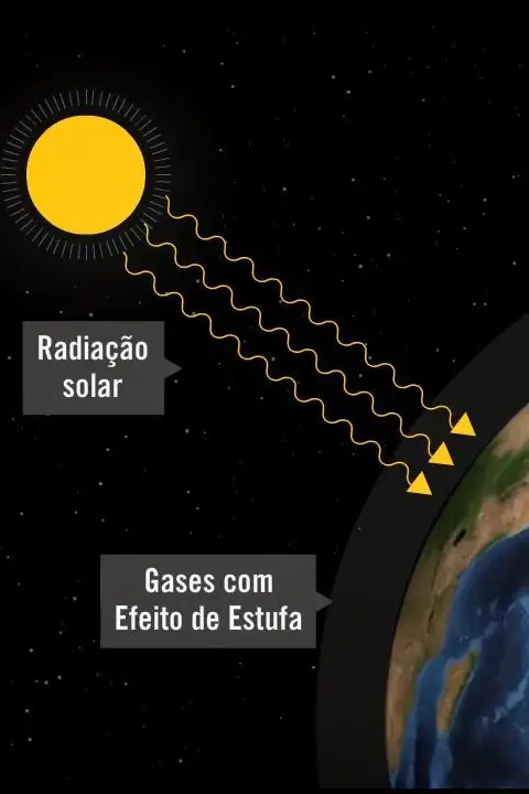 O efeito de estufa é um fenómeno natural que mantém a Terra quente o suficiente para existir vida. É uma espécie de manta invisível que cobre a Terra. Sabias que sem este efeito a Terra seria gelada demais para se viver? O problema é quando há gases de estufa em excesso e provocam o aquecimento global do planeta.