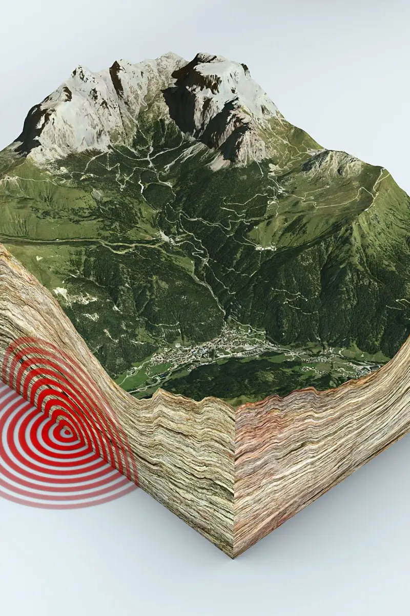 O lugar onde o sismo começa, no interior da Terra, tem um nome especial: hipocentro. É o ponto onde a energia é libertada. A partir daí essa energia espalha-se por todos os lados em forma de ondas, como quando atiramos uma pedra à água e vemos círculos a crescer à sua volta.