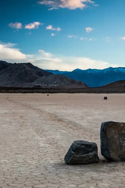 Assim, sem motores nem pernas, as pedras “viajam” lentamente pelo deserto, deixando o seu magnífico rasto gravado na lama.